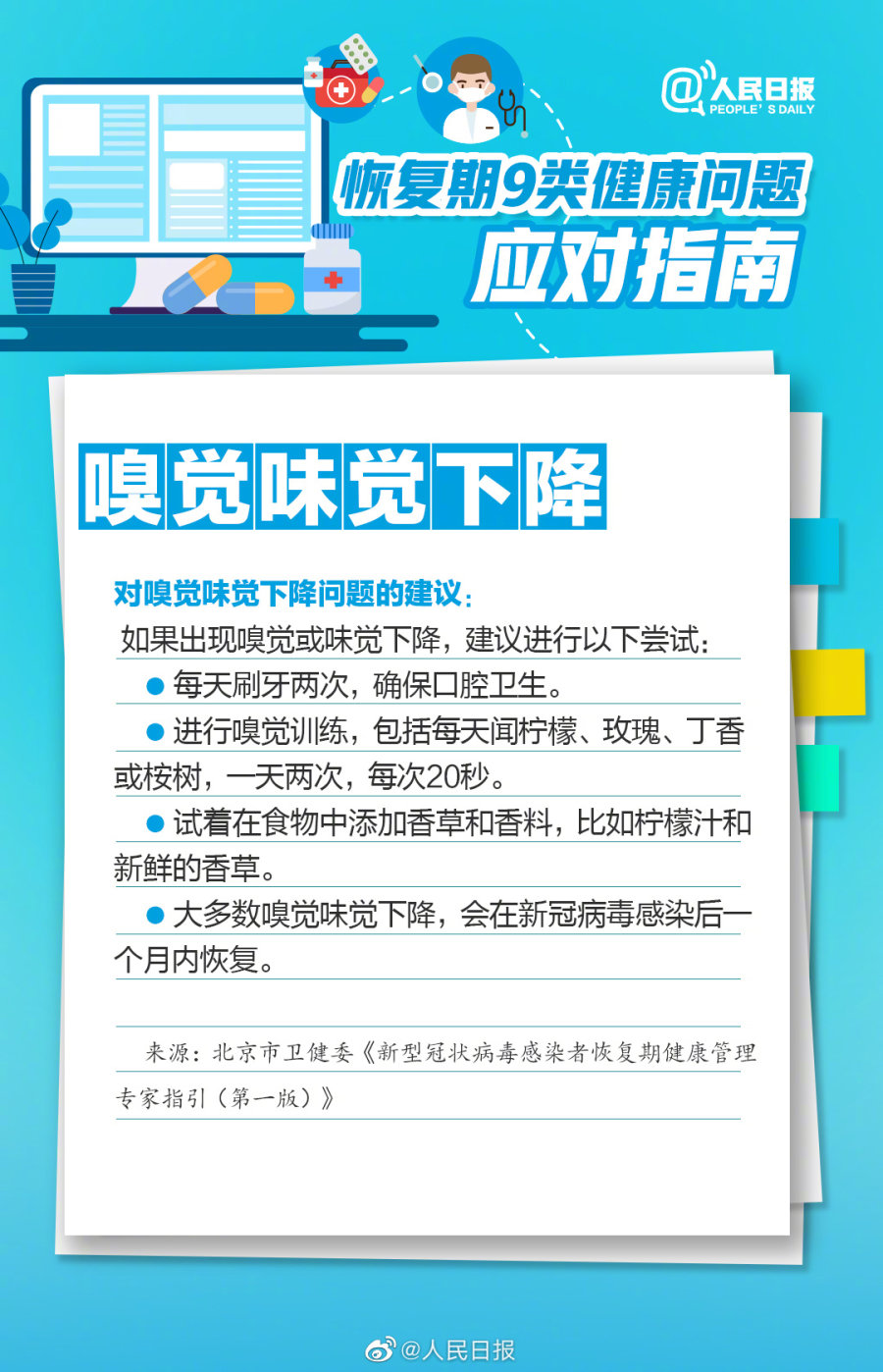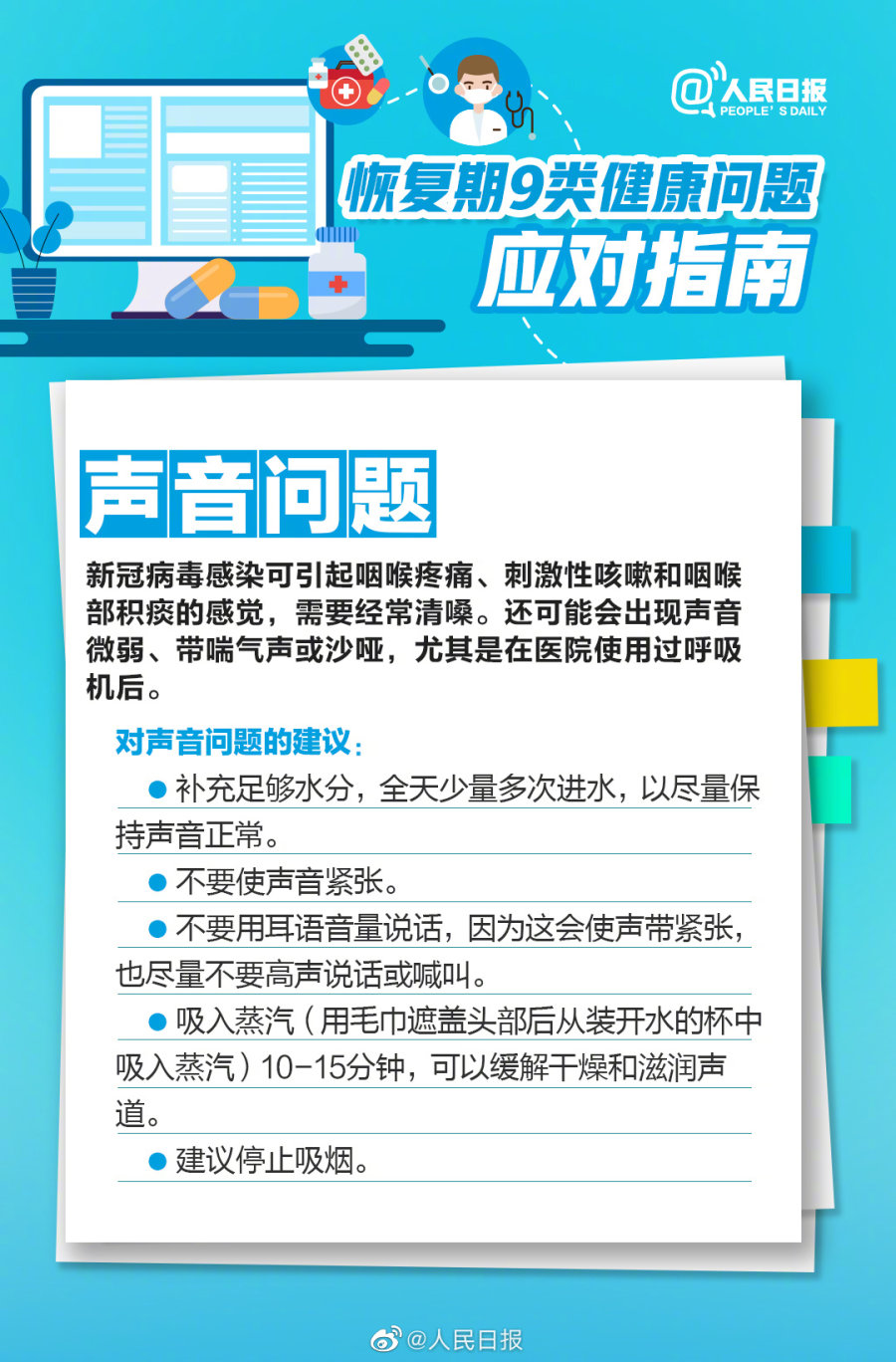 咳嗽、乏力、“宝鹃嗓”、嗅觉味觉下降等,感染后恢复期的你有这些困扰吗?北京卫健委发布《新型冠状病毒感染者恢复期健康管理专家指引(第一版)》,恢复期9类健康问题如何应对?转给你关心的TA!