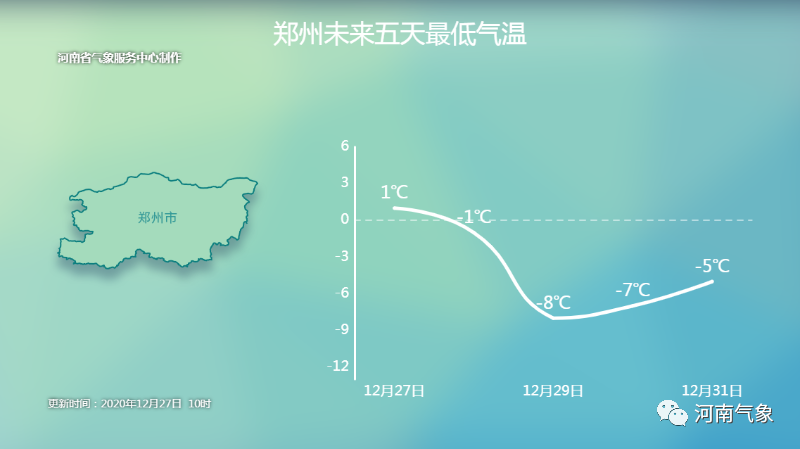 来自郑州市气象部门的信息:预计本周我市受较强冷空气影响,根据预报,周一夜里到周三,我市偏北风4-5级,阵风5-6级。其中周二雨夹雪转小雪,-4℃~1℃。周内最低气温-8℃~-4℃;最高气温1℃~8℃。周内温度较低,需注意防寒保暖。