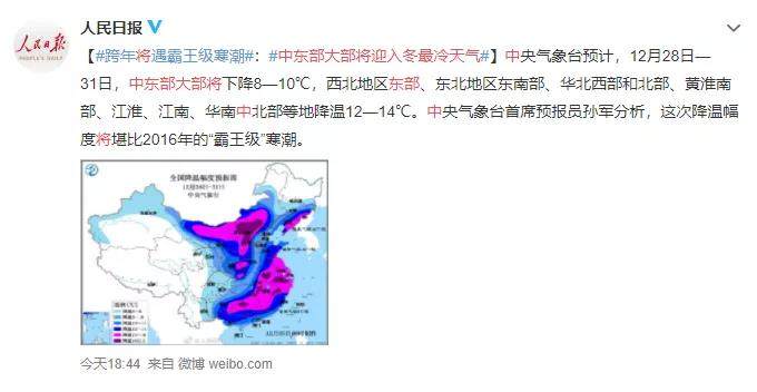 与两周前的“双十二”寒潮相较,此次岁末寒潮无论从影响范围还是降温幅度上均超过前次,但极端性和雨雪强度不及2016年1月的“霸王级”寒潮。