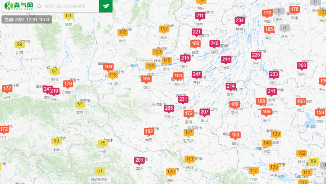 (12月31日10时空气质量指数实况,来源:真气网)