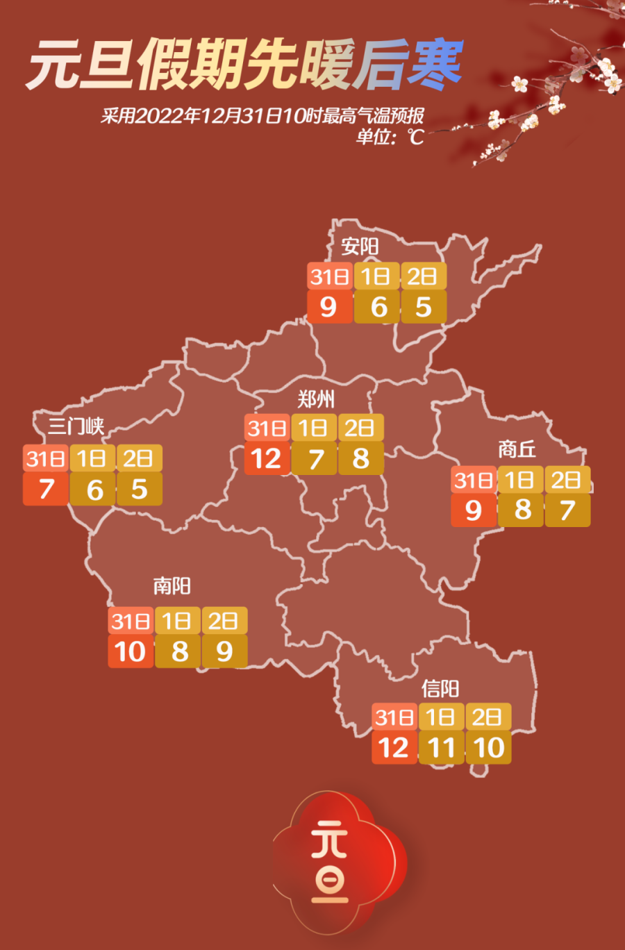 预报来源:河南省气象台2022年12月31日12时预报