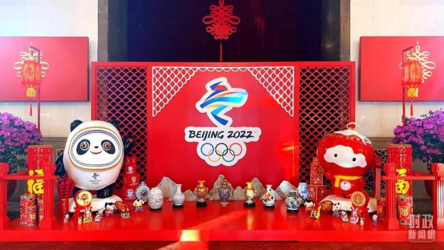 △北京冬奥会、冬残奥会吉祥物亮相北京人民大会堂。(总台央视记者张宇拍摄)