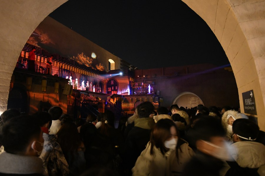 12月31日,在只有河南戏剧幻城现场人头攒动,人声鼎沸,游客们在麦田上跨年,告别2022,迎接2023新的一年。