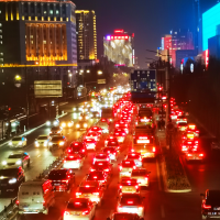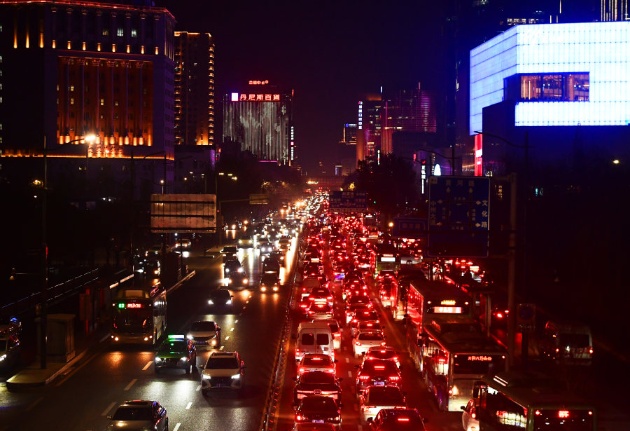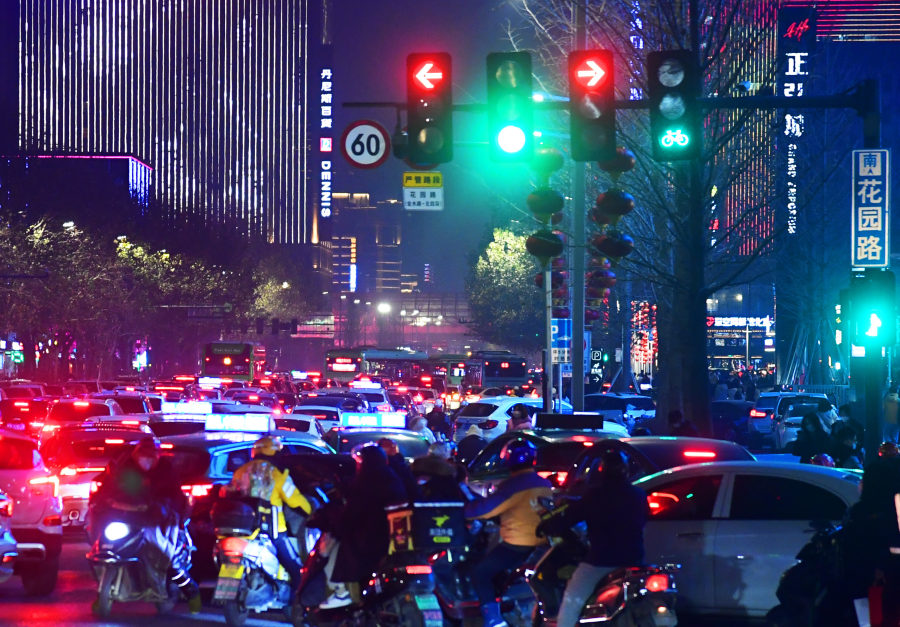 花园路上,夜晚出行购物车辆增加,往市区方向车辆排起长队。 正观新闻记者 周甬 图