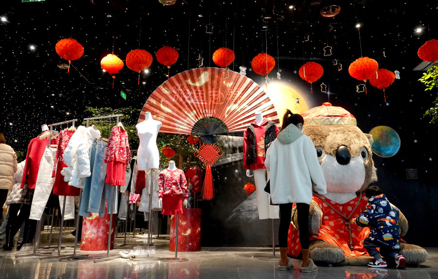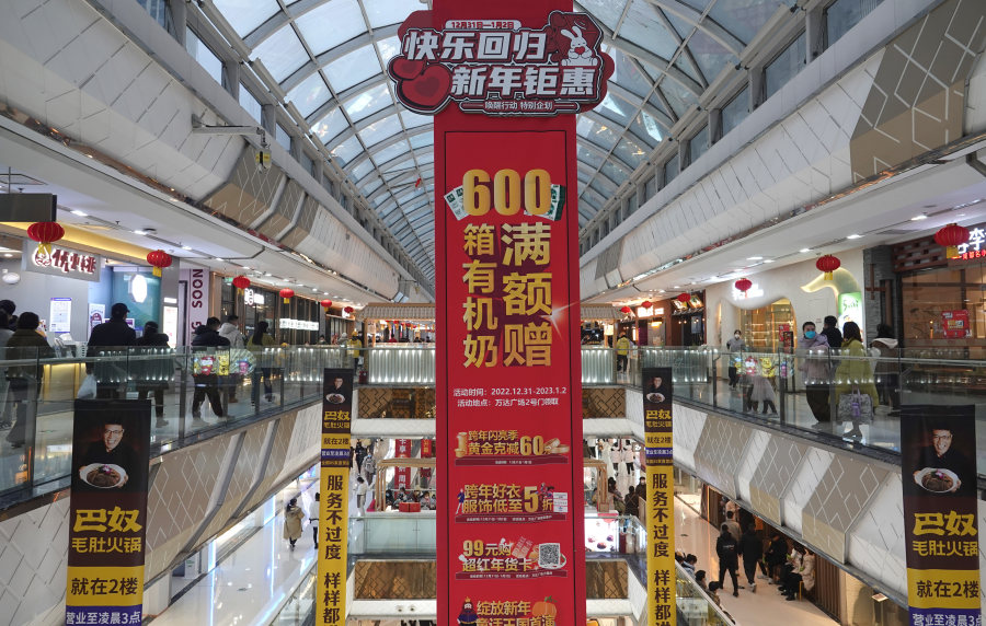 2023年1月1日,元旦假期的第二天,二七万达的一家店装点出浓浓的节日氛围。马健 摄