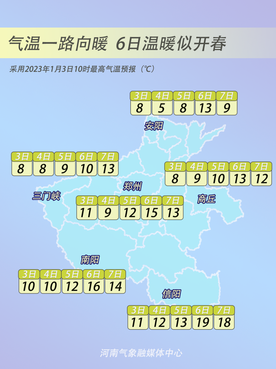 明天,全省多云转阴天,三门峡、洛阳、信阳局部有小雨或零星小雨,西部山区局部有雨夹雪或小雪。