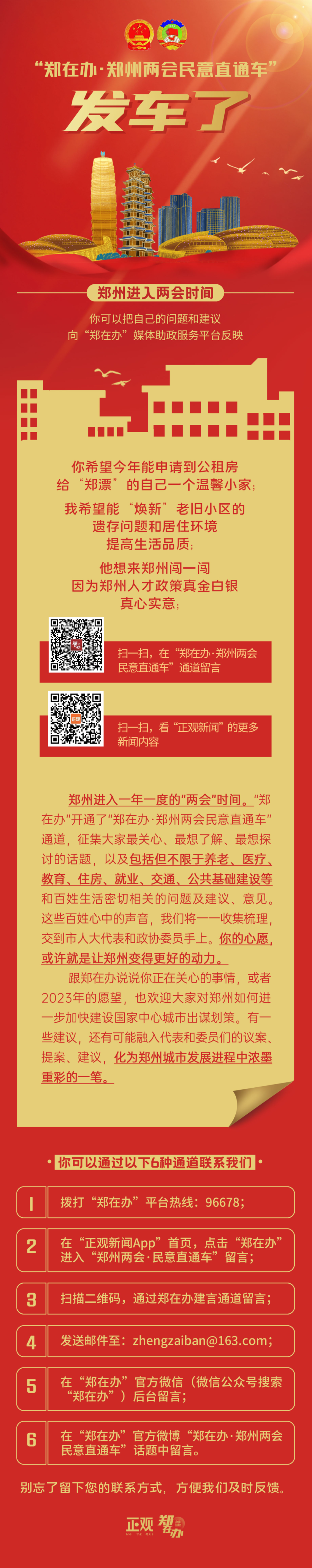 你的建议和见解,还有可能融入代表和委员们的议案、提案、建议,化为郑州城市发展进程中浓墨重彩的一笔。你的心愿,或许就是让郑州变得更好的动力!