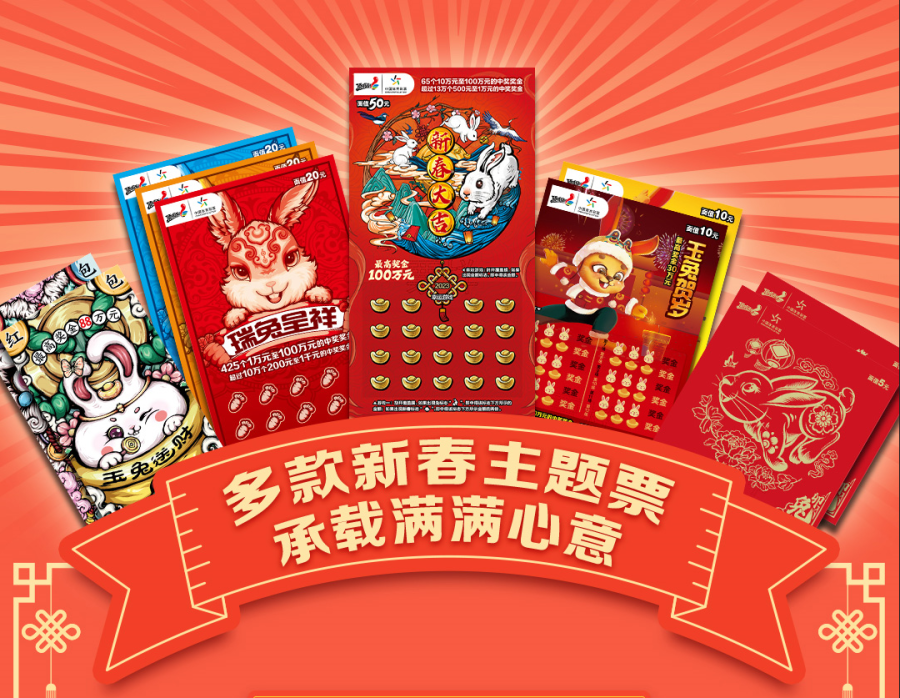 除此之外,主持人还向大家展示了体彩最新推出的时尚有趣的新春主题即开票,包括4款兔年生肖主题票和1款与东来也联名共创的“红包来啦 让好事发生”主题票,精美的票面、美好的寓意,恰好与兔年新年迎好运的期许不谋而合,把春节喜庆欢乐的氛围拉满,在2023年1月18日前购买以上新春主题即开票还有惊喜活动,为你的新年焕新添彩!