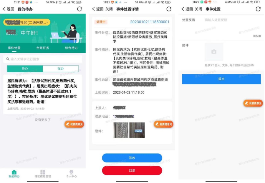 郑州市“新冠病毒感染者服务平台”上线运行后,市民可通过“郑好办--防疫服务专区--新冠病毒感染者服务平台”,填写感染症状、个体诉求类型等相关信息后提交诉求。市民诉求提交后,社区(村)工作人员和家庭医生团队将通过郑政钉--基层数字化工作台--我的待办查看市民提报的诉求,并及时根据实际情况进行服务保障。