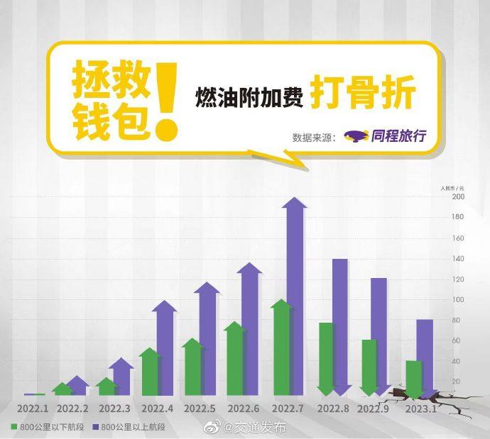 1月5日,机票燃油费正式下调,调整后的费用收取标准为:800公里以上航段每位成年旅客收取燃油附加费80元,800公里及以下航段每位成年人收取燃油附加费40元,较之前分别下降40和20元。
