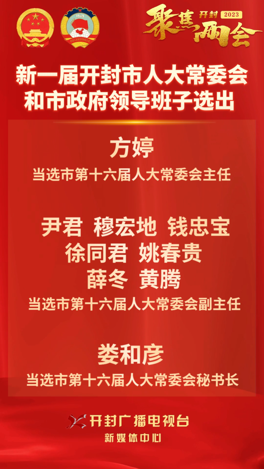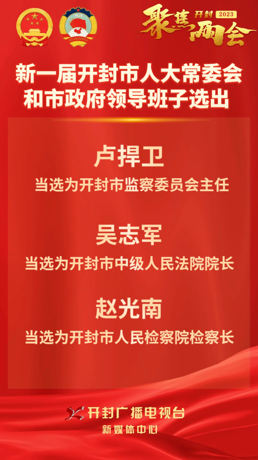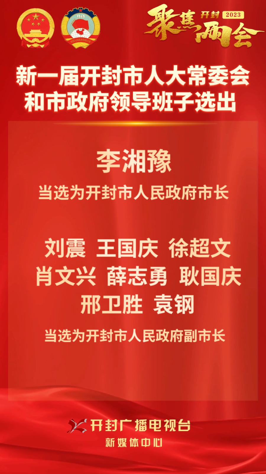 李湘豫当选为开封市人民政府市长,方婷当选为开封市人大常委会主任,卢捍卫当选为开封市监察委员会主任;