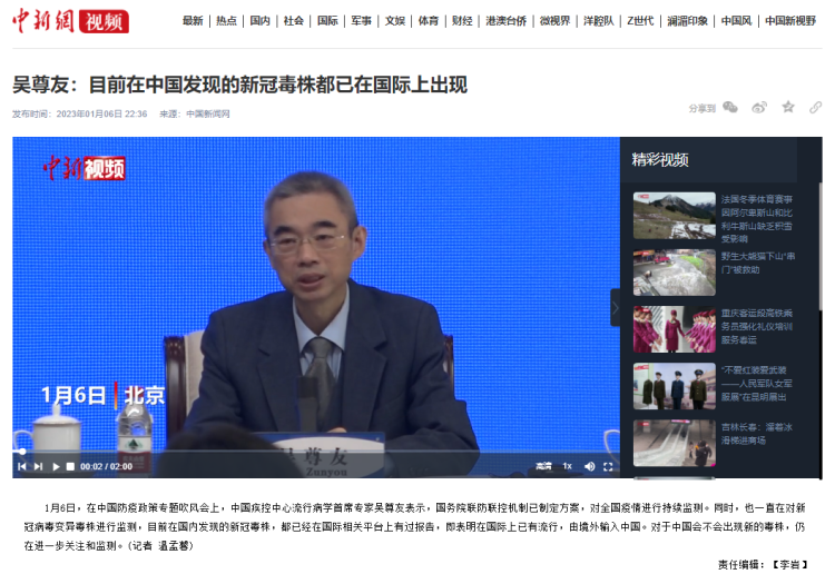 1月6日,在中国防疫政策专题吹风会上,中国疾控中心流行病学首席专家吴尊友表示,国务院联防联控机制已制定方案,对全国疫情进行持续监测。同时,也一直在对新冠病毒变异毒株进行监测,目前在国内发现的新冠毒株,都已经在国际相关平台上有过报告,即表明在国际上已有流行,由境外输入中国。对于中国会不会出现新的毒株,仍在进一步关注和监测。
