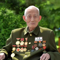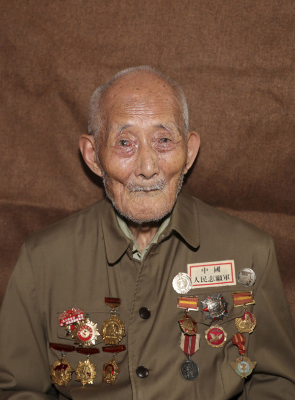 在辽宁省丹东市拍摄的志愿军老战士孙景坤
