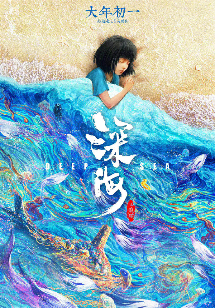 春节档的两部动画片中,田晓鹏执导的《深海》很可能再度创出奇迹,影片由《大圣归来》导演田晓鹏及幕后1478位中国动画人历时7年筹制,因前所未见的视效奇观和美学风格(“粒子水墨”创新中国风)疯狂“出圈”,电影《深海》官宣定档后,仅1小时内便登热榜第一,引网友“刷屏式”期待,角色海报传达出“希望你的每一次笑,都是真心的”治愈态度也让观众深为感动。