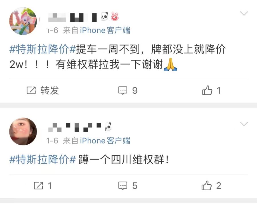 “牌照都还没上呢,就降价了”、“有维权群吗?麻烦拉一下我”……打开社交平台,可以看到有不少特斯拉老车主表达不满。