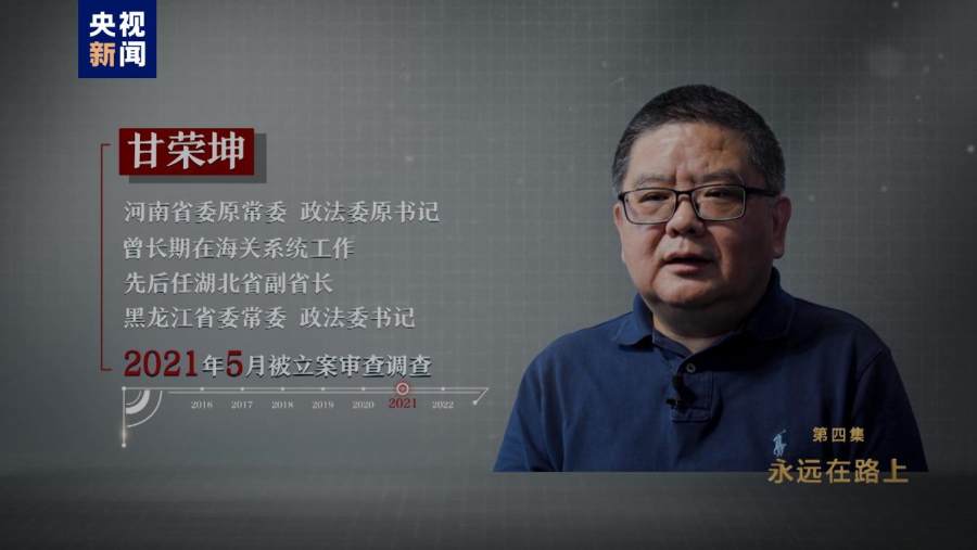甘荣坤,河南省委原常委、政法委原书记,曾长期在海关系统工作,先后任湖北省副省长,黑龙江省委常委、政法委书记,2021年5月被立案审查调查。