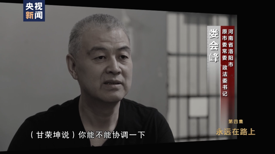 河南省洛阳市政法委原书记 娄会峰:那个老板直接打给我的,他上来第一句话就说娄书记,甘书记和你讲话。甘荣坤说,你能不能协调一下,人放了,很直接。