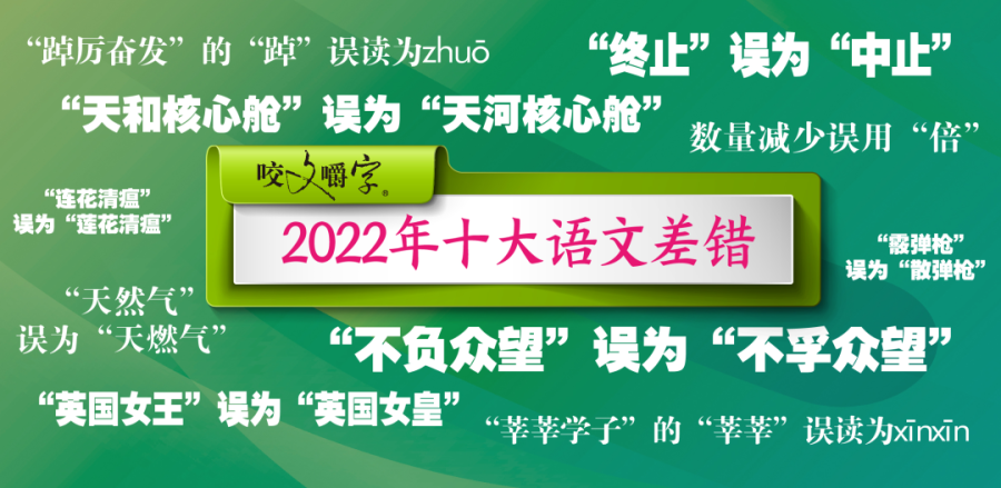 11日,《咬文嚼字》编辑部公布了2022年度“十大语文差错”,包括以下内容。