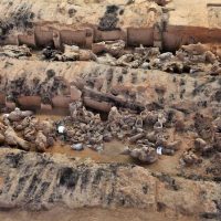 秦始皇帝陵博物院1月12日发布了秦兵马俑一号坑第三次发掘成果,共清理陶俑220余件,陶马16匹;战车4乘、鼓2处、鼓槌1处、漆盾1处、笼箙3处;兵器柲多处、弓弩箭箙多处;发现车马器、兵器、生产工具等,共计近千余件(组)。