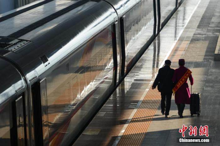 1月7日,乘务员在重庆北站站台帮助老人乘车。当日,2023年春运正式启幕。 中新社记者 何蓬磊 摄