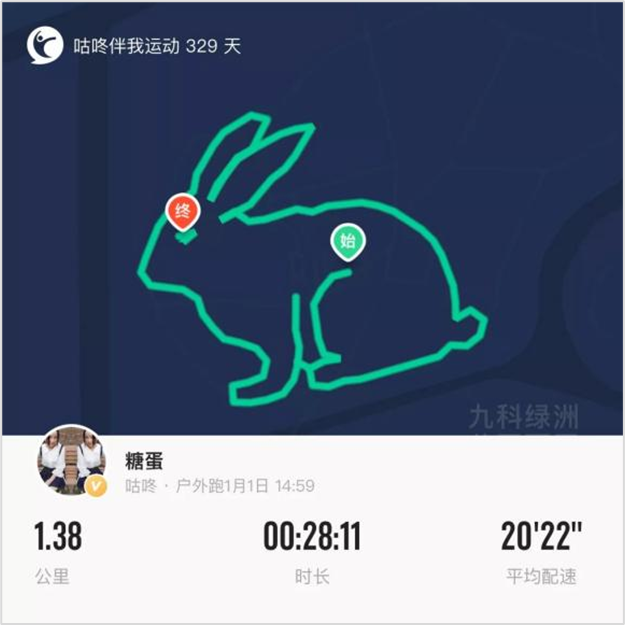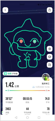 咕咚平台的交流区#2023年全国新年登高健身大会#话题已达到24.1万,通过形式多样的运动打卡图片或视频,大家纷纷分享着自己的运动成果和新年心愿,并送出对2023年的祝福。在表达自己运动快乐的同时,也互相分享着健康生活的理念。别具一格的“奔跑者”创意十足的运动轨迹更加引人瞩目,他们用奔跑的方式一步一步绘制出“2023”“小兔子”等形象生动的图案。更有跑出了体彩吉祥物“乐小星”的卡通形象和“中国体育彩票”的字样,表达对新年祝福,新的一年,愿好运将至,愿幸福平安。