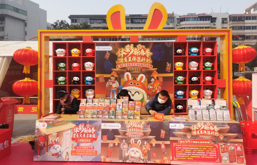 体彩新春季,瑞兔呈祥送好彩。信阳体彩分中心连续多年围绕生肖主题即开票开展“体彩新春季”品牌营销活动,传递新春美好祝福。