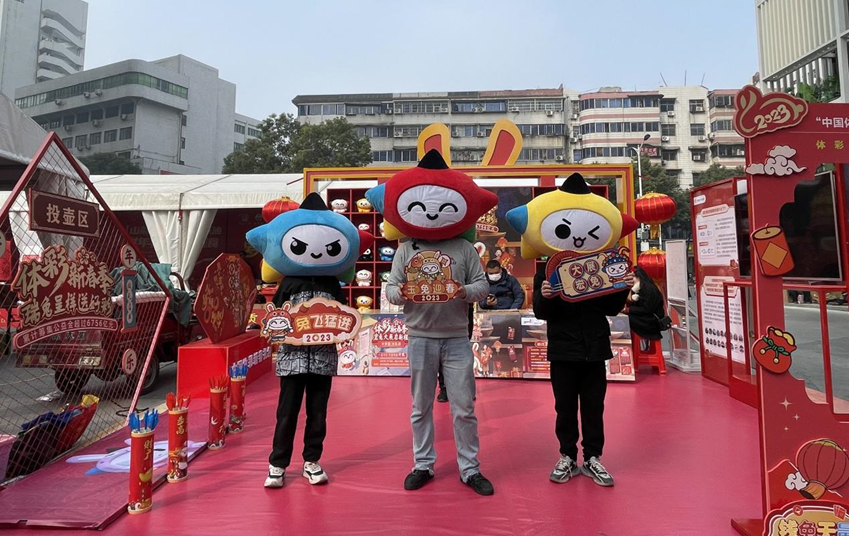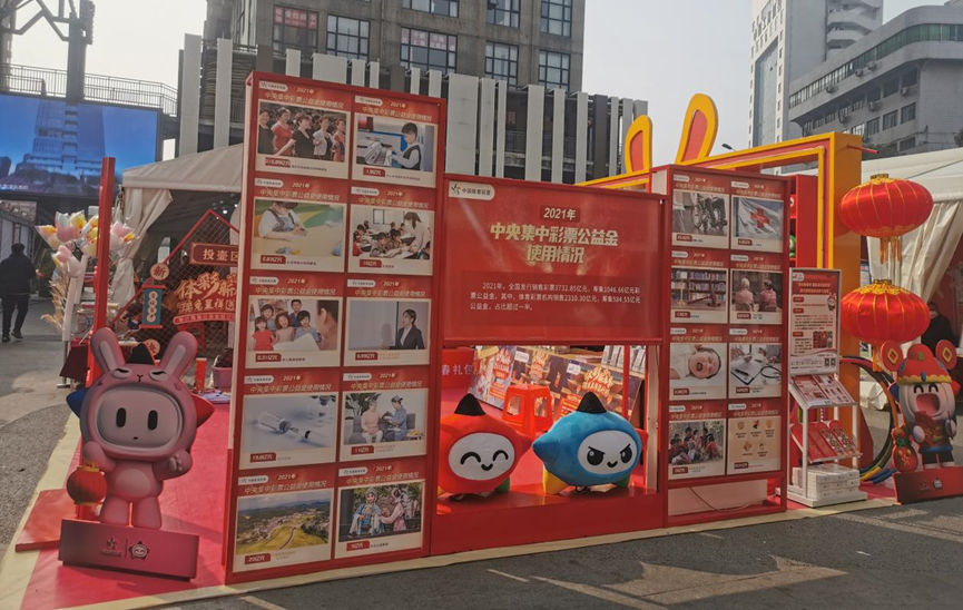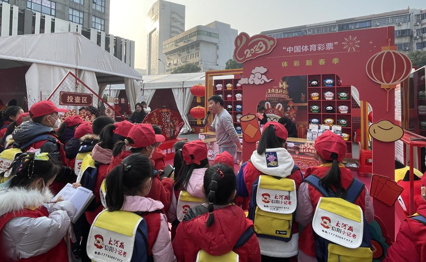 2023年1月11日(农历腊月二十),大河信阳年货节在万家灯火城市广场开幕。活动现场,信阳体彩精心搭建体彩新春季品牌展位,包括好运集市主题背景衍生品展示区、全民健身公益与责任彩票成果展示区、乐小星新春季立牌网红打卡拍照区、兔年生肖主题即开票展示及售卖体验区、趣味互动游戏区等,为年货节助力添彩。