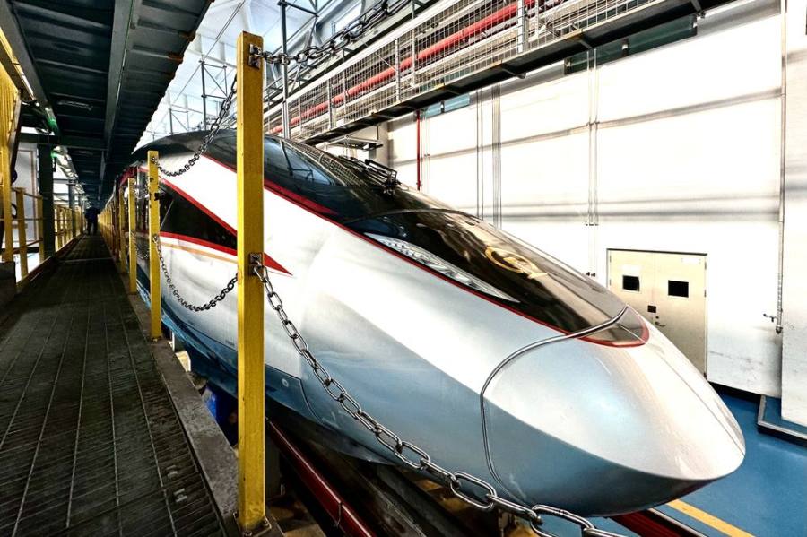 在哈尔滨动车段展示的复兴号高寒智能动车组(新华社记者 徐凯鑫 摄)