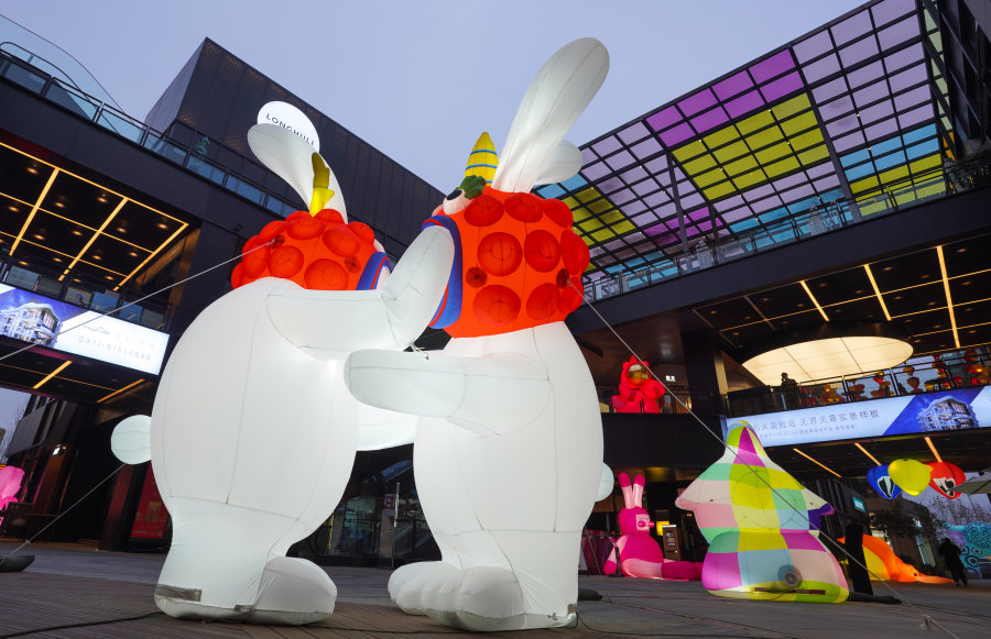 郑东新区龙湖里商业街区各种各样的“兔兔”马健 摄