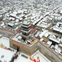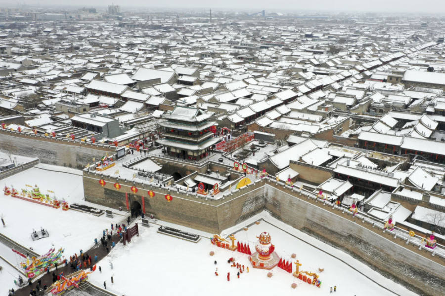 1月14日拍摄的山西平遥古城雪景(无人机照片)。新华社发(梁生仁摄)