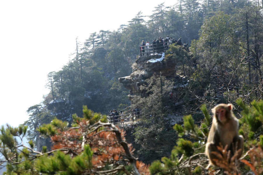 1月18日,游人在张家界国家森林公园黄石寨游览。新华社发(吴勇兵摄)
