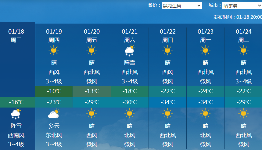 哈尔滨最低气温或低至-34℃ 长春-25℃