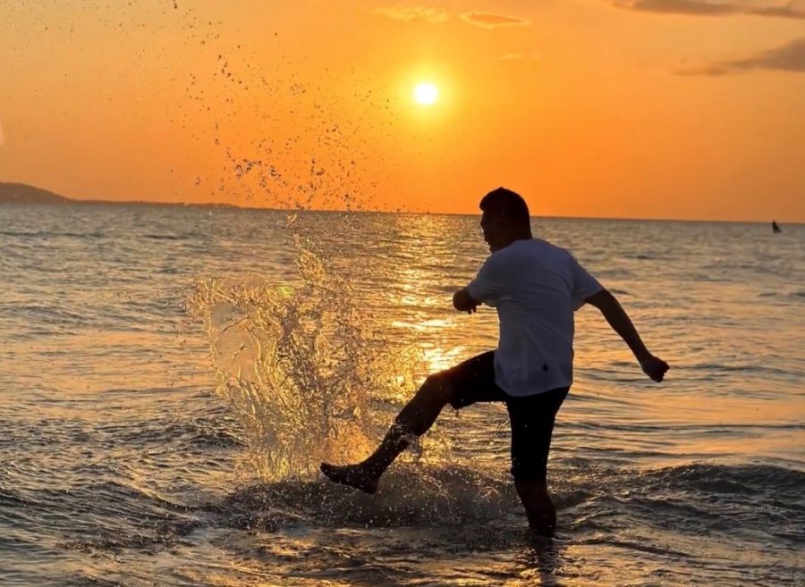 陆先生在三亚海边玩耍