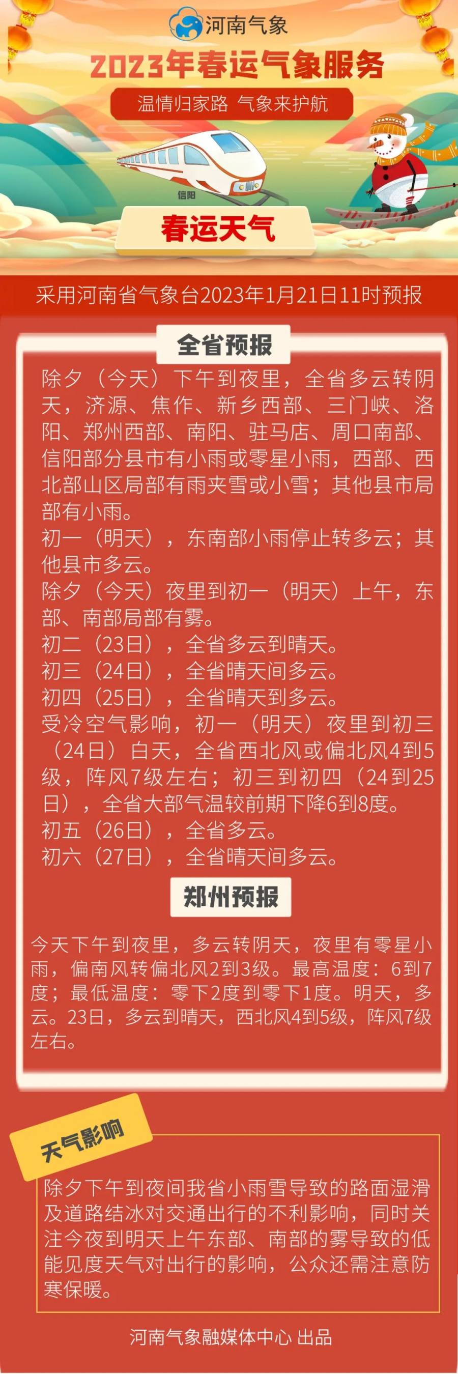 春运气象服务|除夕有小雨雪 假期河南有大风强降温