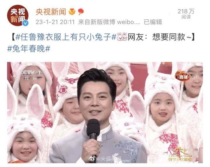 兔年春晚一开场,大家就关注到主持人任鲁豫衣服上的萌兔子。有网友直呼,“想要同款”。