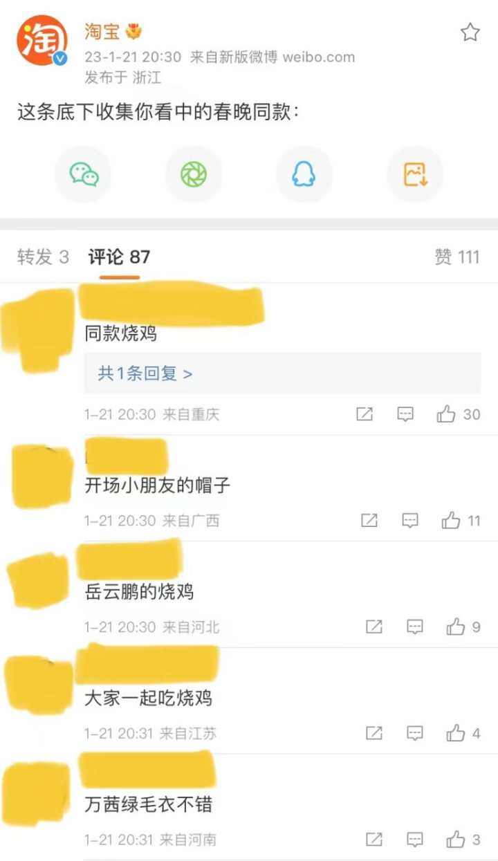 昨晚,春晚还在进行中,淘宝向网友在线发问,“收集你看中的春晚同款。”