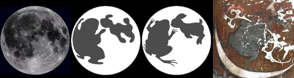 图3:月中阴影和蟾蜍、兔形象演变示意图(右图出自马王堆西汉墓帛画)