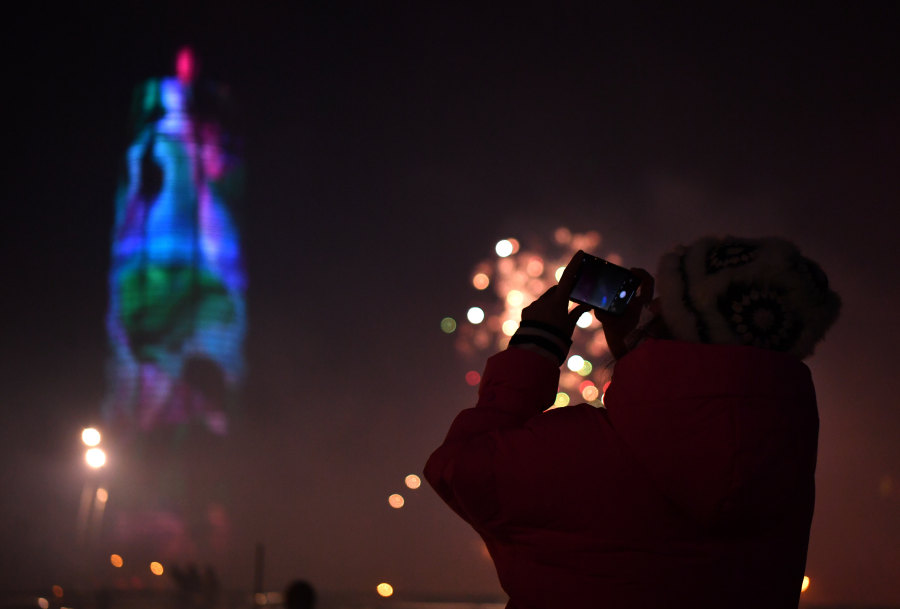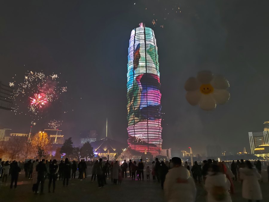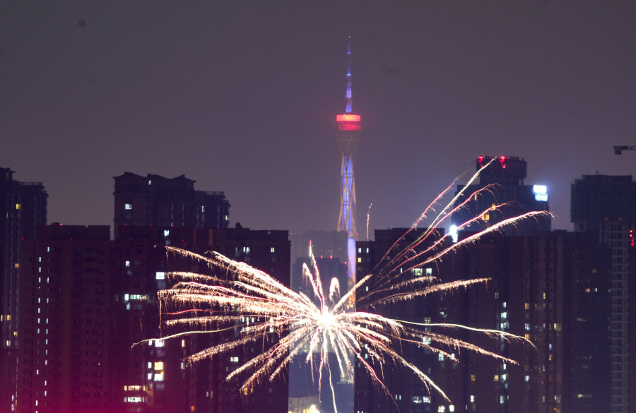 郑州:灯光烟花秀,红红火火迎新年