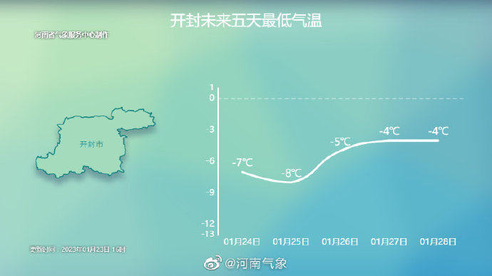 另据河南气象消息,本周将有两股冷空气登场,首先受第一轮冷空气影响,24日全省将出现4到5级大风,阵风7级左右;并且24日、25日两天,全省大部气温较前期明显下降,最高气温会降至0℃左右。