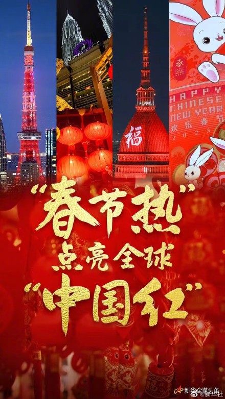 中国与世界相约兔年“春节时刻”,在“中国红”传递的喜庆中,一同拥抱春天的生机、跃动和希望,一道携手并肩前行,共期美好未来。