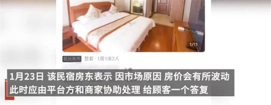 据报道,事后该平台提出补偿400元,外加首晚住宿费30%的费用69元,共469元。钱先生表示对于该平台的赔付,他非常不满意,其诉求是按消费者权益保护法,退一赔三。1月23日,该民宿房东表示,因市场原因,房价会有所波动,此时应由平台方和商家协助处理,给顾客一个答复。房东称,该平台却直接让她不用处理,下架房源,她认为对方没做好这个工作,以后也不会再与之合作。