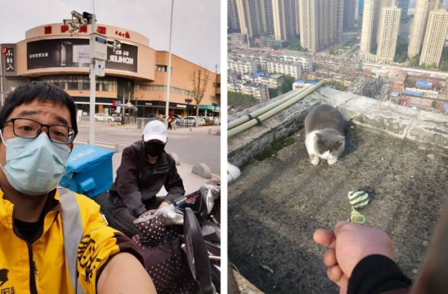 武汉封城,外卖员老计成了城里为数不多可以到处跑的“摆渡人”,买药、送菜、帮孕妇买验孕棒、帮回不来武汉的女孩喂猫……每天回家后,他用微博当日记,写下当天的经历:“白天给电瓶车换电池的时候,我看到一条小狗,它很无辜地看着我,但我没有能力去收养它。我骑车离开,狠心没有再看它一眼。”