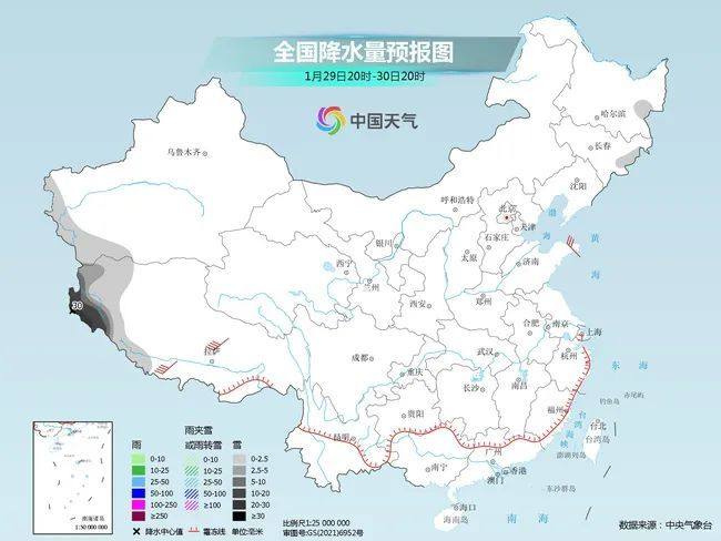 29日至30日,西藏西部有小到中雪