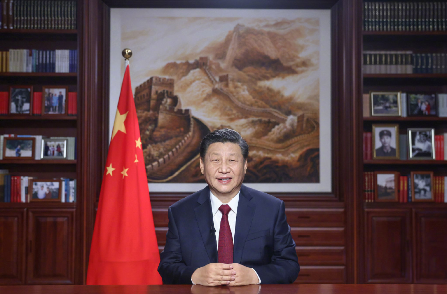 新年前夕,国家主席习近平通过中央广播电视总台和互联网,发表二〇二〇年新年贺词。 新华社记者 鞠鹏 摄