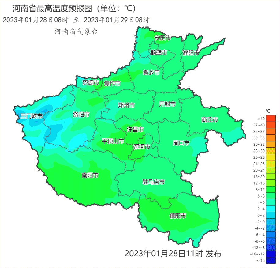 28日下午到夜里,晴天间多云。偏西风4到5级,阵风7到8级。最高温度:7到8度;最低温度:零下1度到0度。