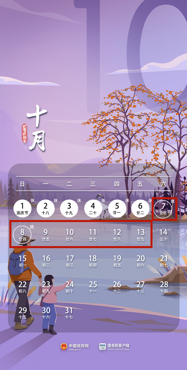 中秋和国庆假期再次“合体”,形成8天超级黄金周。不过,超级黄金周过完,需要连上7天班。