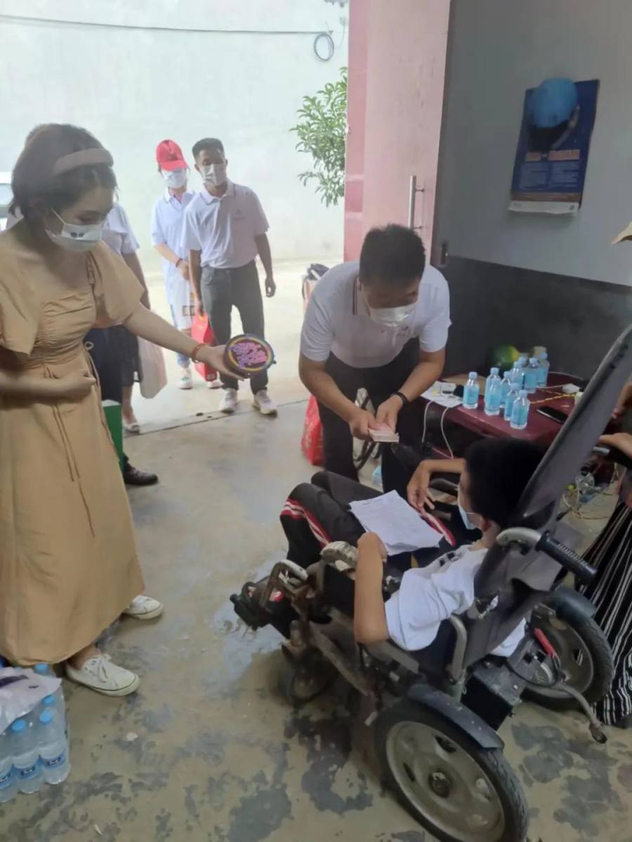 2022年6月29日下午,河南体彩南阳分中心工作人员及代销者一行8人,来到方城县杨楼乡大宋庄村,为阳光少年庞洪钊送去一万元的“体彩助莉”基金及生活用品。