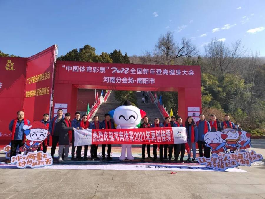 2022年1月1日,“中国体育彩票”2022年全国新年登高健身大会河南分会场活动在南阳独山森林公园举行。开幕式结束后,100多名登山爱好者代表借助新年登高表达新年新气象、人人步步高、生活日日新、身体更强健的美好祝愿,带动体育事业开好头、起好步,也掀起全民健身活动热潮,加快推进体育强国建设。河南体彩南阳分中心工作人员在配合组委会做好后勤保障工作的同时,也主动融入活动,以实际行动体现“公益体彩 责任先行”,为持续推进“十四五”体育彩票高质量发展做出贡献。