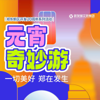 灯火璀璨时,万家皆平安。月与灯依旧,人月两团圆。2023年,正值郑东新区开发20周年,为丰富元宵节期间人民群众文化生活,郑东新区管理委员会将于2023年2月3日—2月5日(农历正月十三至十五)在郑东新区如意湖 CBD 广场区域举办郑东新区开发20周年系列活动暨“一切美好·郑在发生”元宵奇妙游活动。