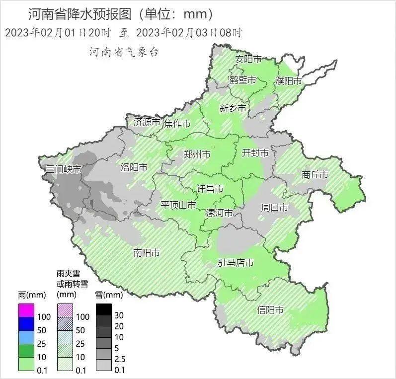 2月1日白天,全省多云转阴天。夜里,全省阴天,三门峡、洛阳、南阳北部有小雪或雨夹雪,南阳南部小雨转雨夹雪。